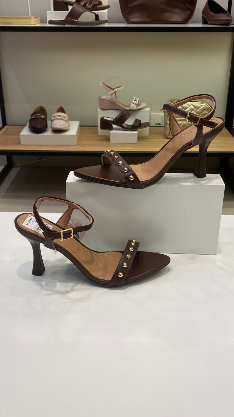 Sofisticada e atemporal, esta sandália em couro pinhão traz elegância em cada detalhe. O design de tiras finas com aplicações douradas valoriza o visual, enquanto o salto fino adiciona um toque de feminilidade e modernidade. Perfeita para compor produções elegantes, do dia à noite, com muito estilo e conforto.